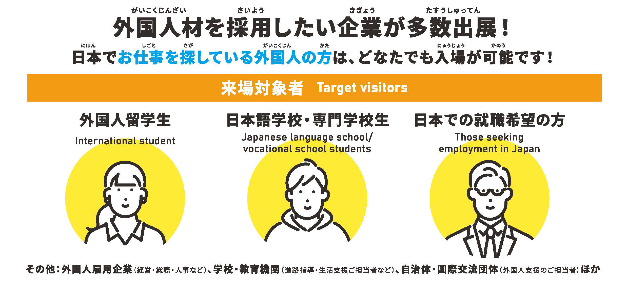学校・専門学校生、日本での就職希望の外国人の方、外国人雇用企業、学校・教育機関、