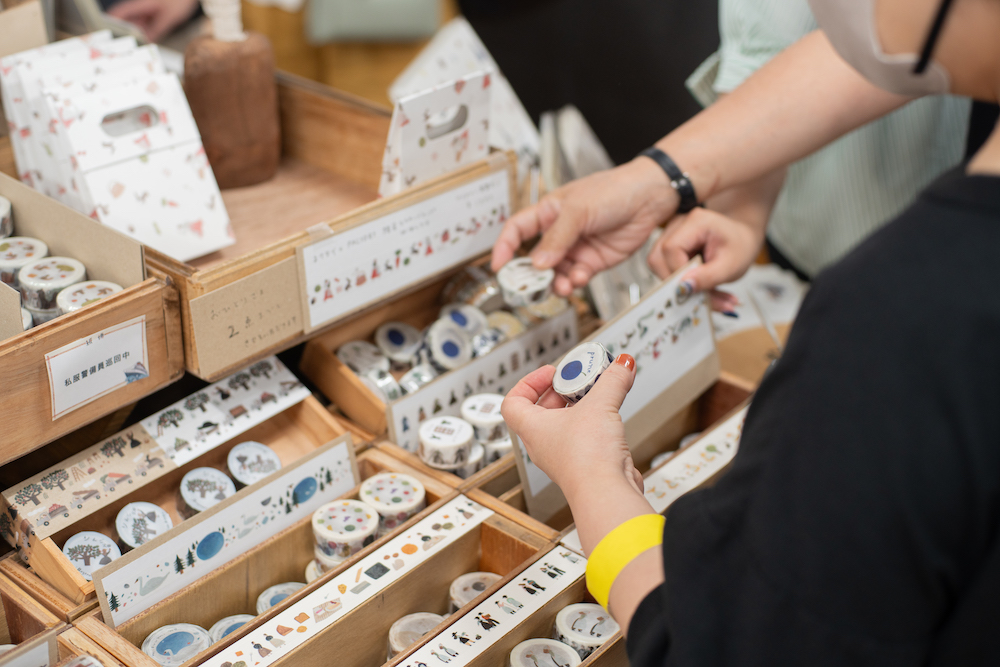 のを持ち寄り交換できる「紙ものお裾分けっこ」、700個以上のはんこを思う存分押すことができる